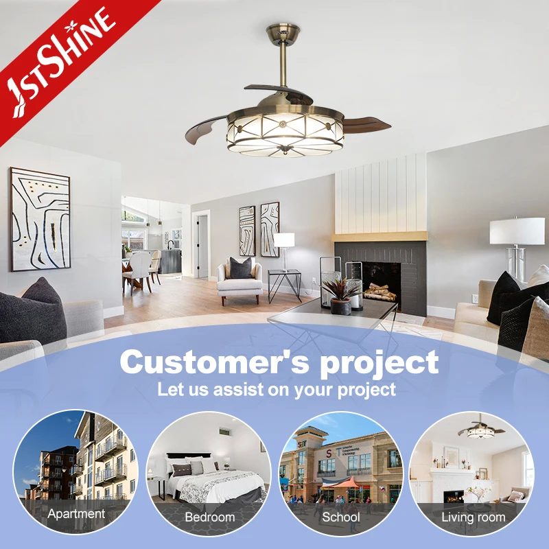1stshine LED Ceiling Fan Dinning Room OEM Copper Decoration Led Retractable Ceiling Fan Light