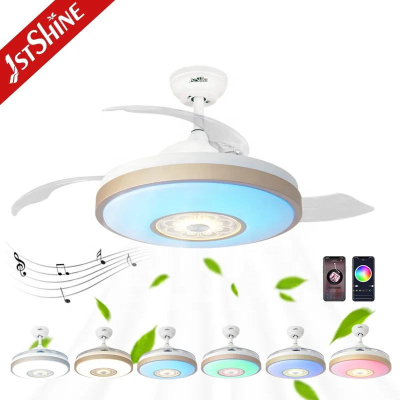 1stshine LED Ceiling Fan Bedroom Soft Wind Retractable LED RGB Lighting Ceiling Fan and Remote Control