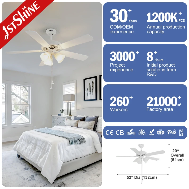 1stshine Ceiling Fan Rustic Pull Chain Control AC Motor Adjustable 3 Speeds Wind Tropical Ceiling Fan