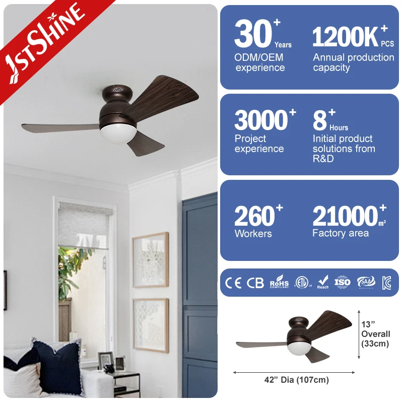 1stshine Ceiling Fan Wood Smart Remote Control 6 Speeds LED Flush Mounted Ceiling Fan with Light