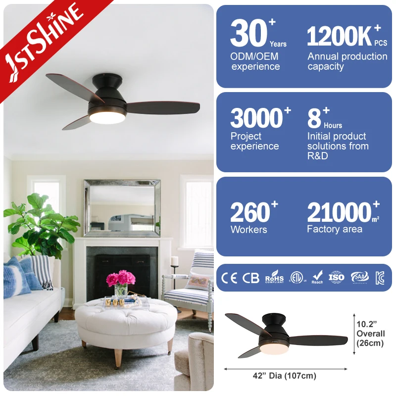 1stshine LED Ceiling Fan MDF Wood Blades Silent Big Airflow 42 Inches Ceiling LED Light and Fan