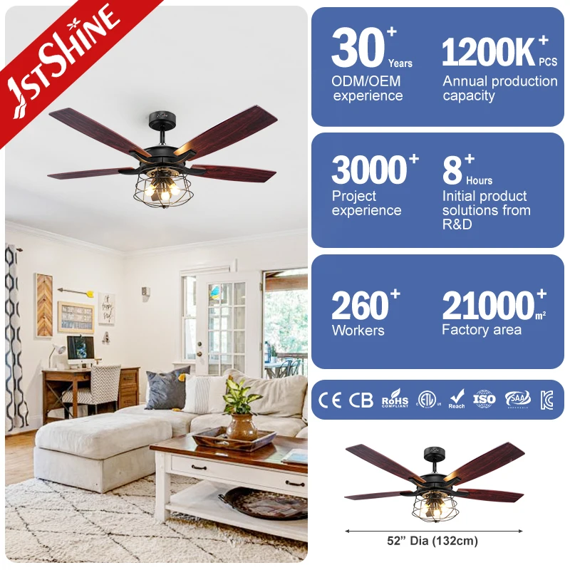 1stshine Ceiling Fan OEM 52" High Speed Decorative 5 MDF Blades Traditional Ceiling Fan with Light Kit