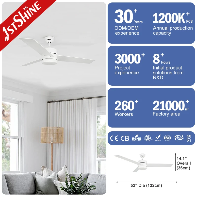 1stshine Ceiling Fan Bedroom DC Motor MDF Blade Easy Clean Smart APP White Ceiling Fan with Light