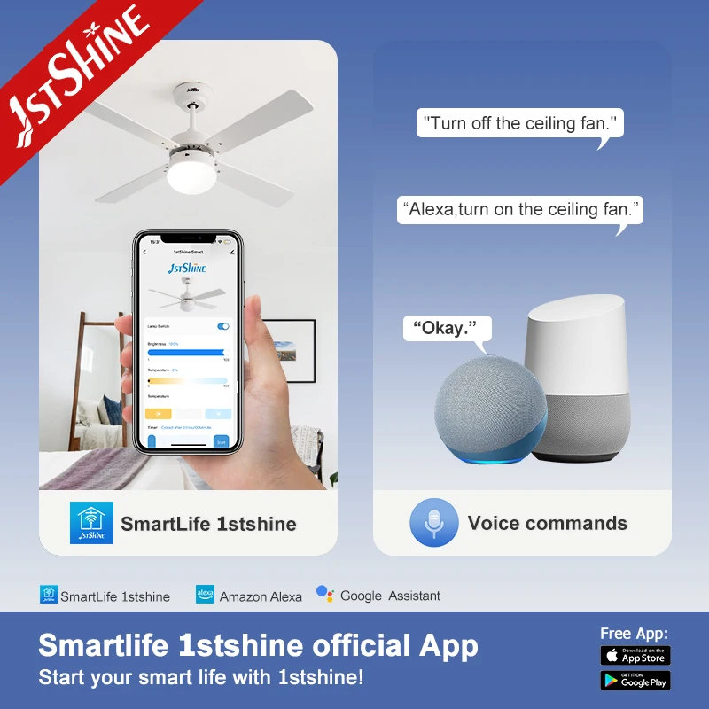 1stshine Wholesale LED Ceiling Fan 42 Inches AC Motor Smart Modern Ceiling Fan with Light Kit