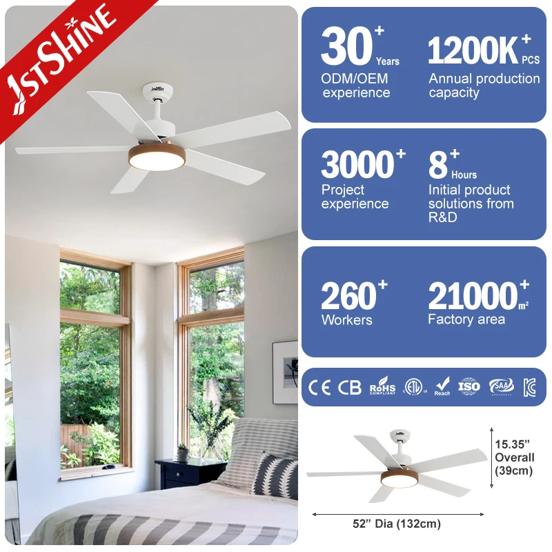 1stshine LED Ceiling Fan Smart Home Adjustable Wind DC Motor App Control Ceiling Fan with LED Lighting