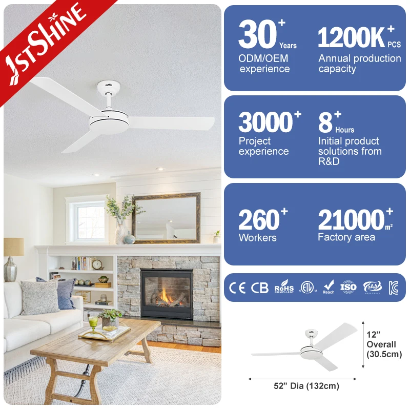1stshine Ceiling Fan Manufacturer 3 Blade Wood MDF White No Light Ceiling Fan