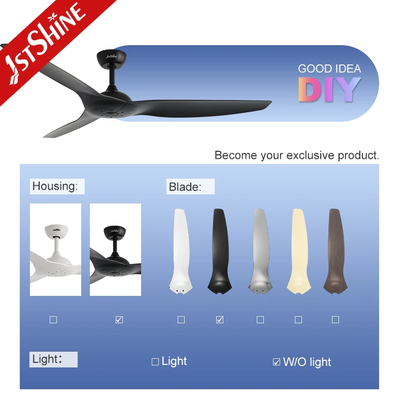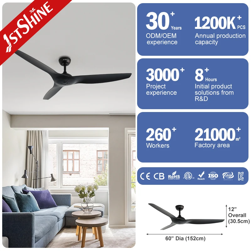 1stshine Ceiling Fan Factory Black OEM ODM 3 ABS Blades 6 Speeds 60 Inches Remote Ceiling Fan No Light