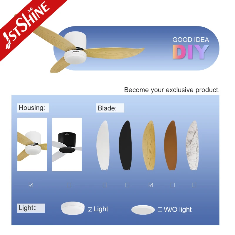 1stshine Ceiling Fan 220V Home Plastic Blades Low Profile LED Remote Ceiling Fan with 3 Color LED Light