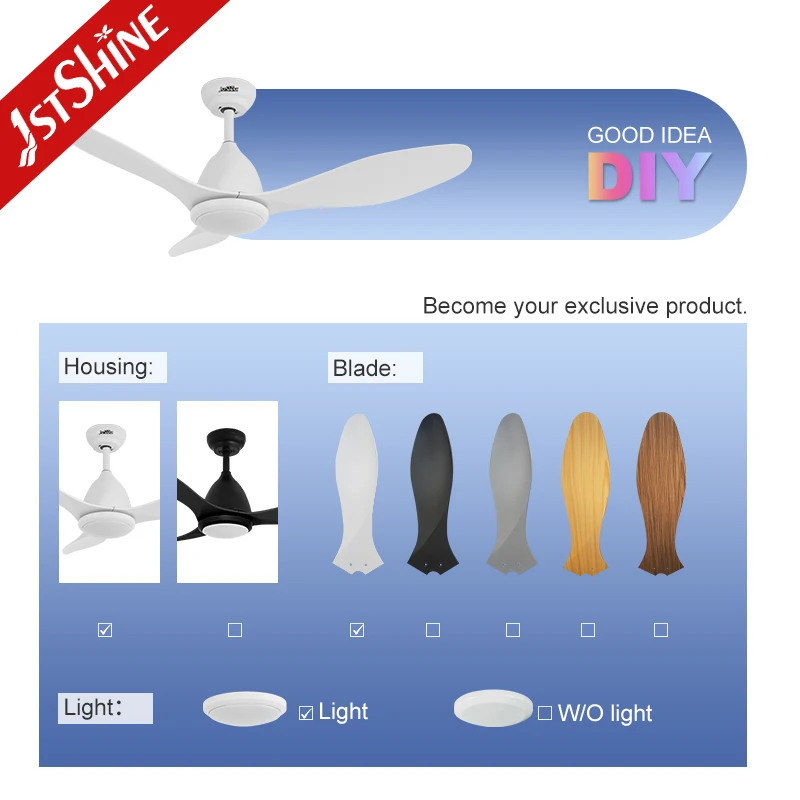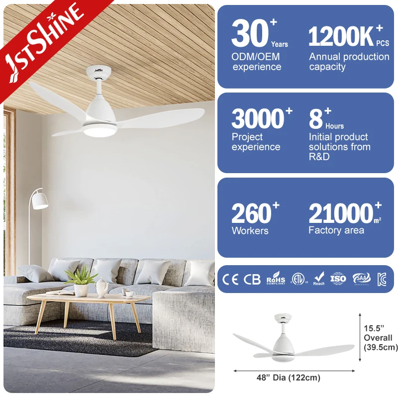 1stshine Led Ceiling Fan White ABS Blades 220V Low Noise 40db Led Lighting Silent Ceiling Fan