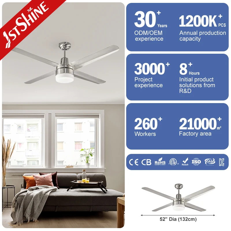 1stshine Ceiling Fan Industrial High Quality 52 Inches Iron Blade Ceiling Fan With Light