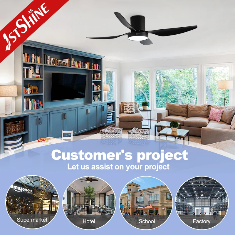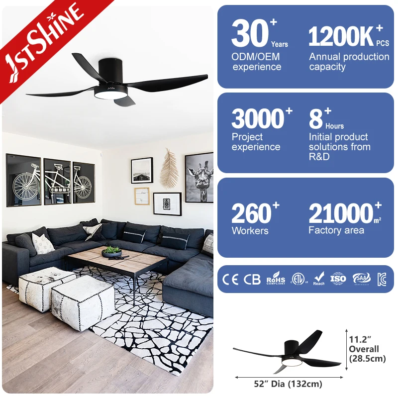 1stshine LED Ceiling Fan Black 52 Inches Energy Saving 4 ABS Blades Ceiling Fan with LED Light