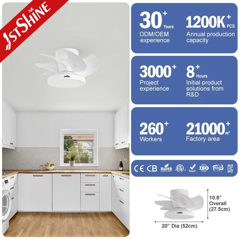 1stshine Ceiling Fan 7 White ABS Plastic Simple Blades Electric Flush Mounted Ceiling Fan with Led and Remote