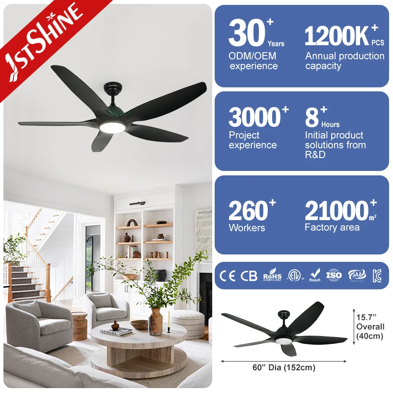 1stshine LED Ceiling Fan Decorative 5 Plastic Leaf DC Quiet 6 Speeds Smart Ceiling Fan with LED Light