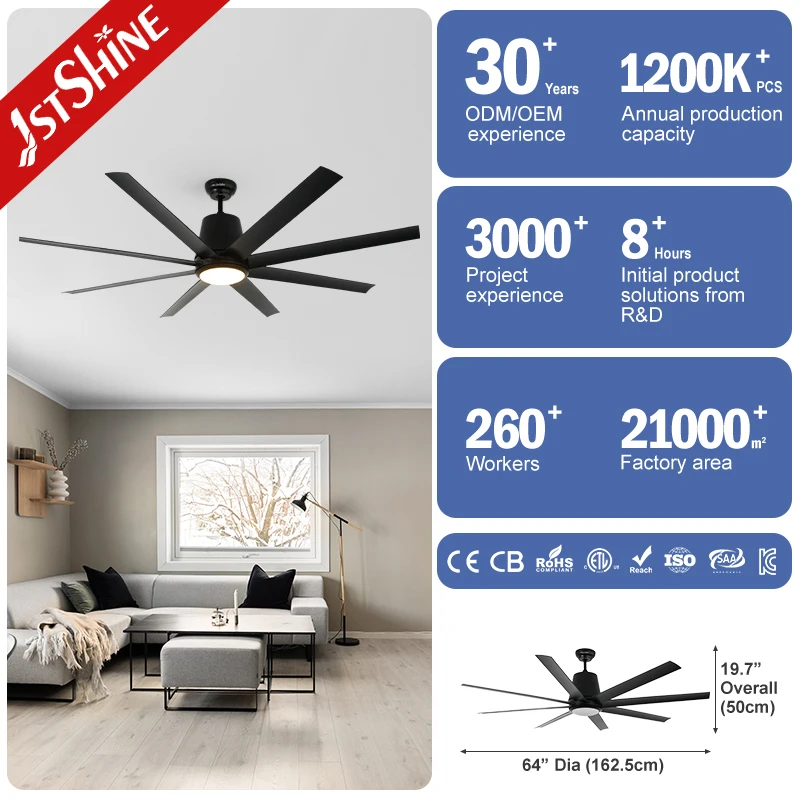 1stshine LED Ceiling Fan 64 Inches Black ABS Blades Dimmable Light Large Ceiling Fan with Led Lighting
