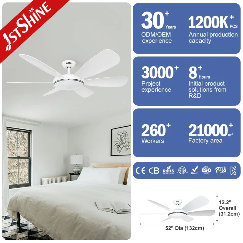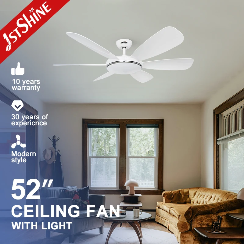 1stshine Ceiling Fan White Finish DC Motor Good Quality Energy Saving 52 Inches Ceiling Fan with Led Light