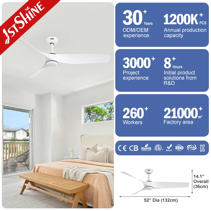 1stshine Ceiling Fan Fancy ABS Blades comfort Airflow 52 Inches Remote Control Ceiling Fan with DC Motor