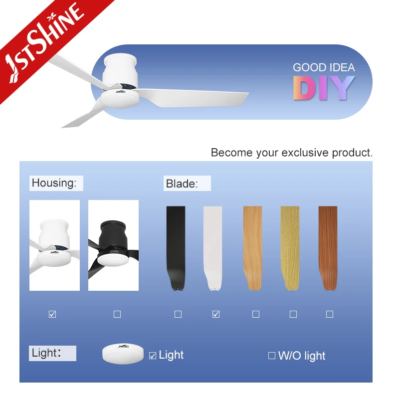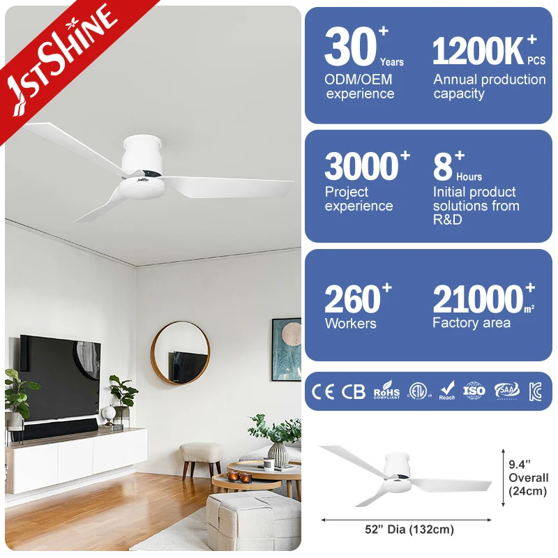 1stshine LED Ceiling Fan 52 Inches Three ABS Blades Remote Control Led Flush Mount Ceiling Fan