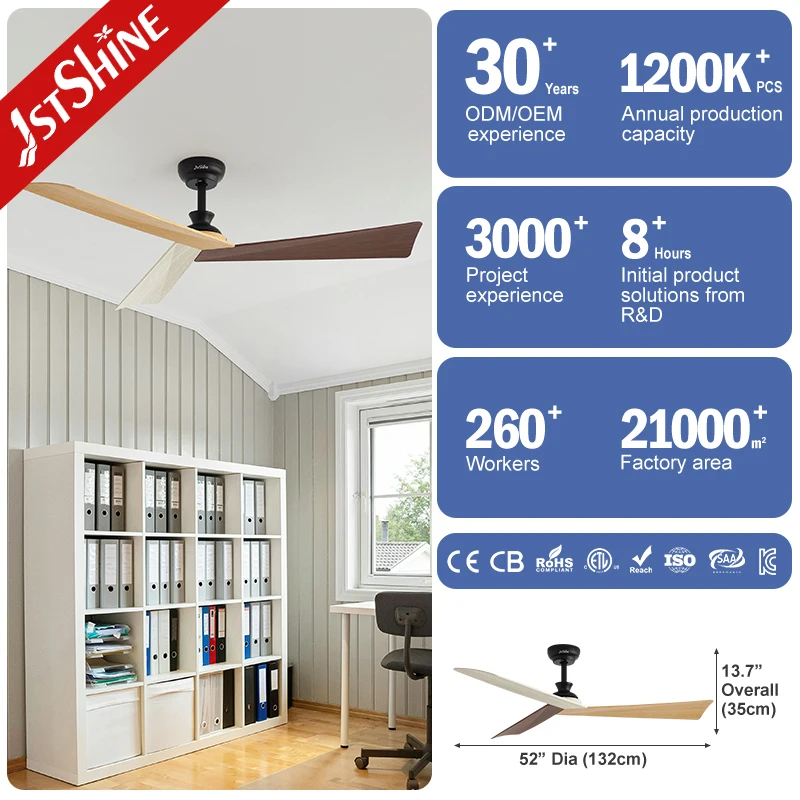1stshine Ceiling Fan Indoor 220V DC Motor 6 Speeds Black 3 Color Plastic Blades Ceiling Fan Without Light