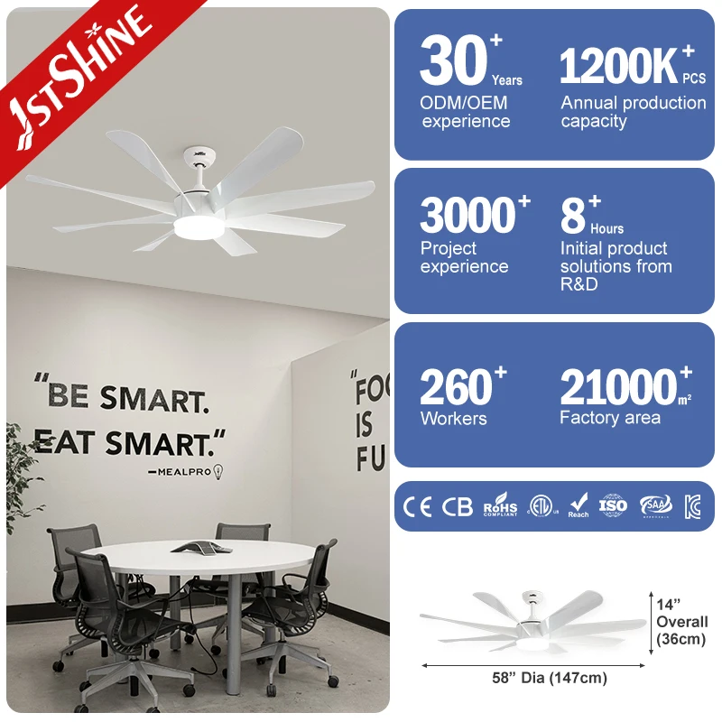 1stshine LED Ceiling Fan 58 Inches 8 Plastic Blades OEM Color Remote Control Ceiling Fan Light