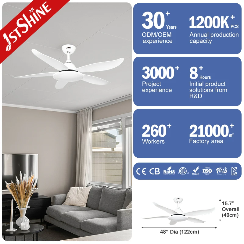 1stshine Ceiling Fan Hot Sale 48 Inches High Speed 5 ABS Baldes White Ceiling Fan with LED Light