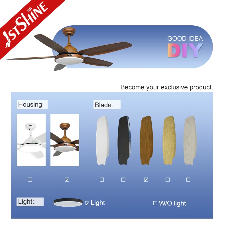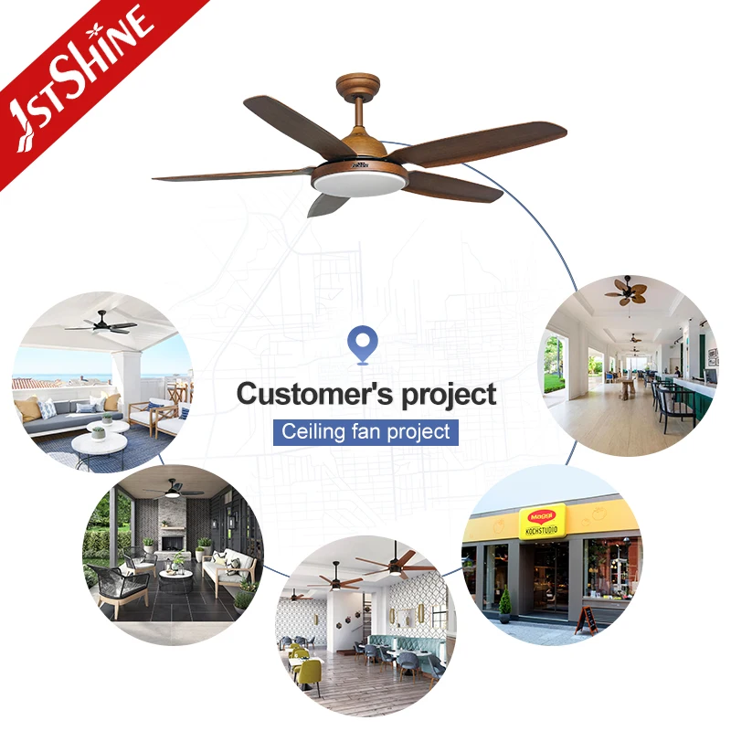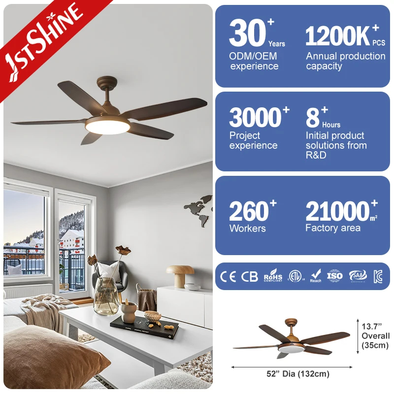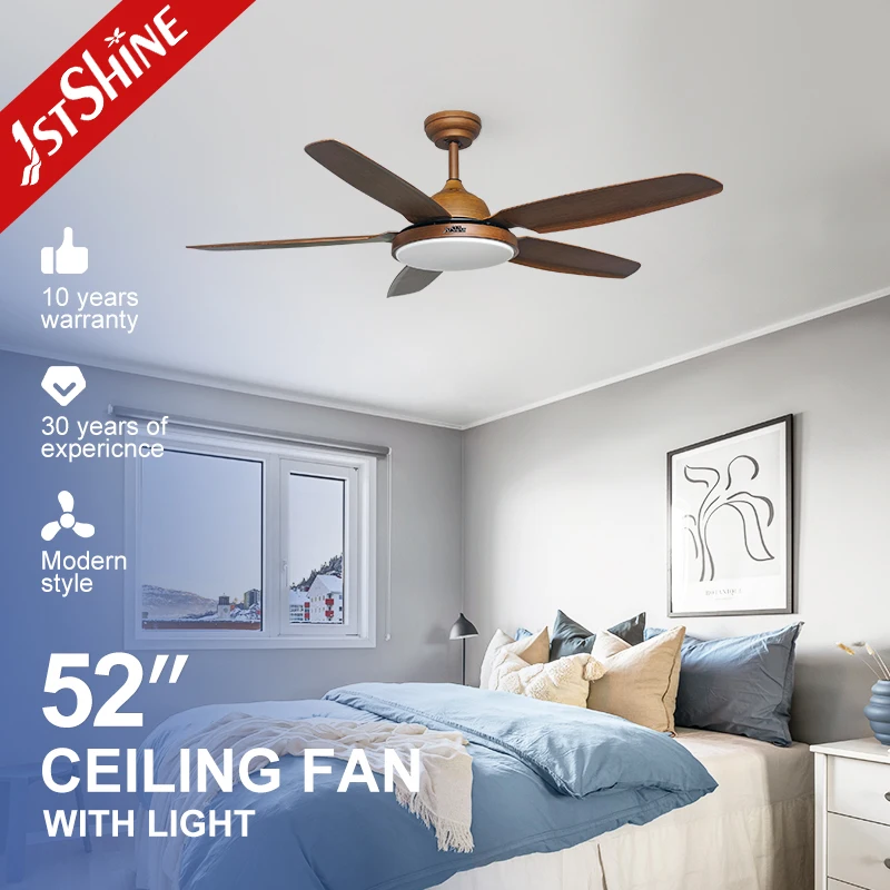 1stshine LED Ceiling Fan ODM OEM 5 Plastic Blades Decorative Lighting 52 Inches Ceiling Fan with Dimmable LED Light