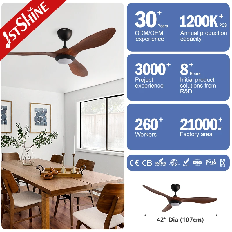 1stshine Ceiling Fan Wood Grain Plastic Blades Durable Smart Ceiling Fans with App Control