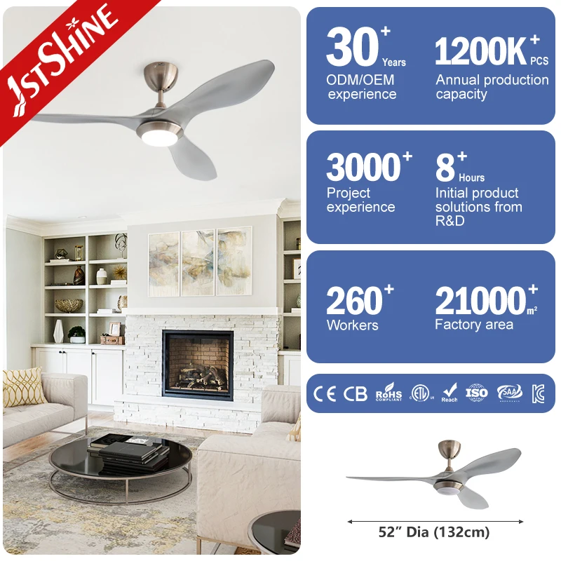 1stshine Ceiling Fan Manufacturer 3 LED Dimmable Lighting Ceiling Fans with 6 Speeds Remote