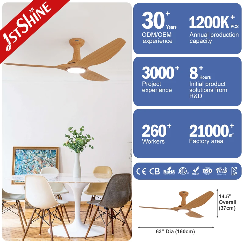 1stshine LED Ceiling Fan 63" 3 ABS Blades Flush Mounted DC Motor Big Ceiling Fan