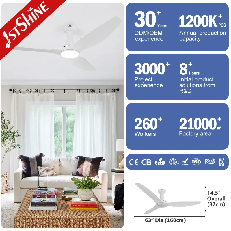 1stshine Ceiling Fan with DC Motor Smart Control Flush Mount White Ceiling Fan Light
