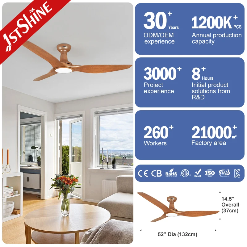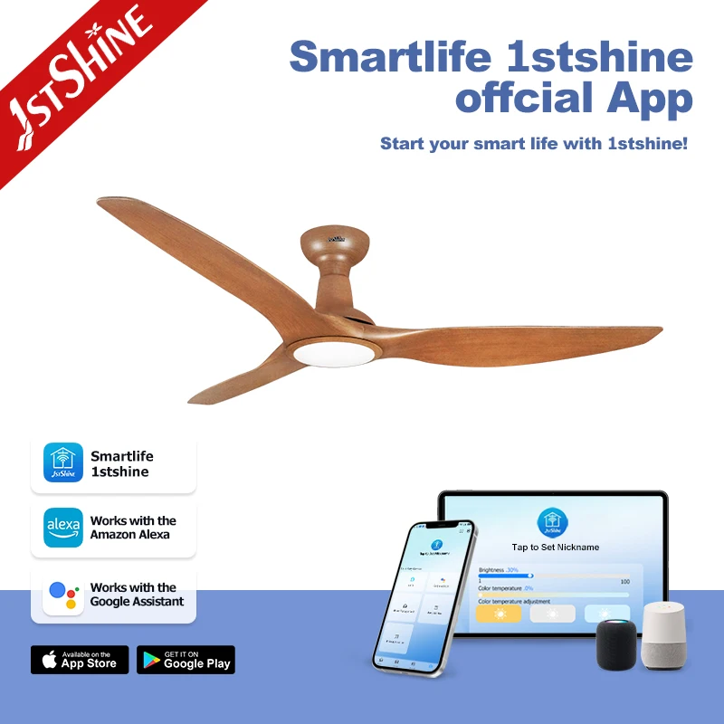 1stshine LED Ceiling Fan Wood Grain ABS Blades High Speed Flush Mounted Ceiling Fan with Light