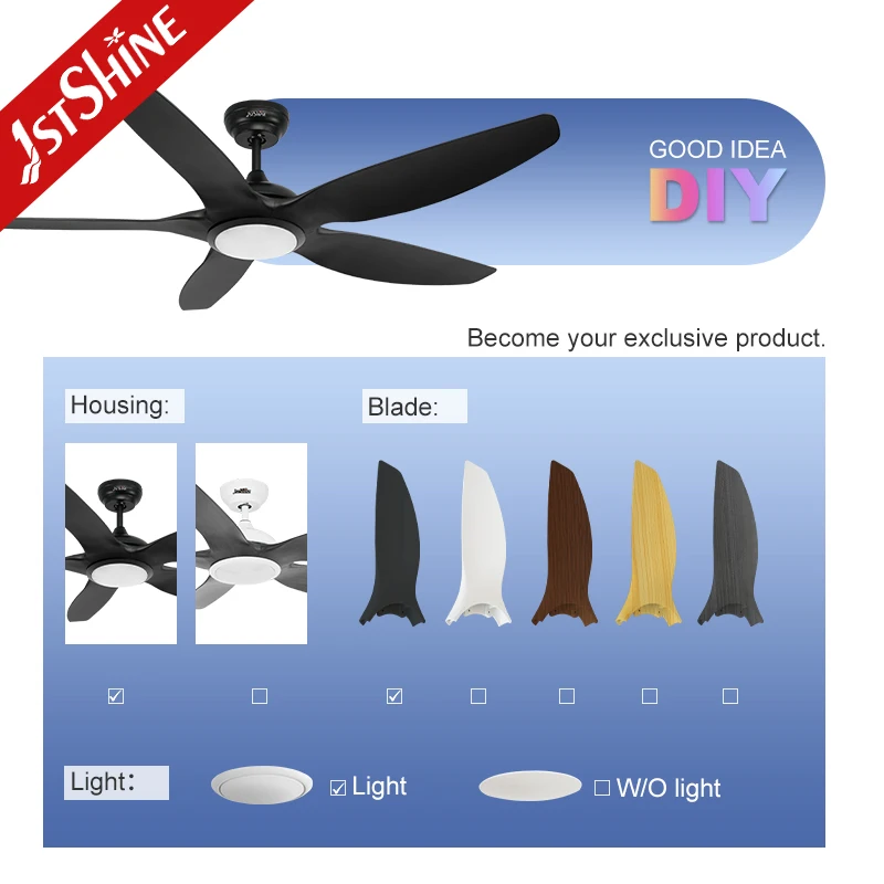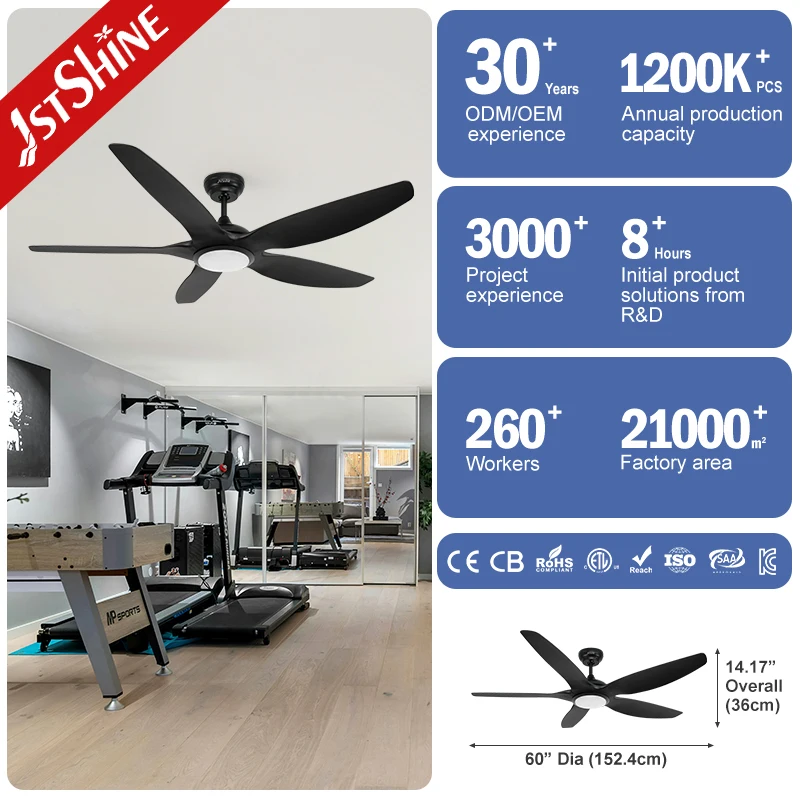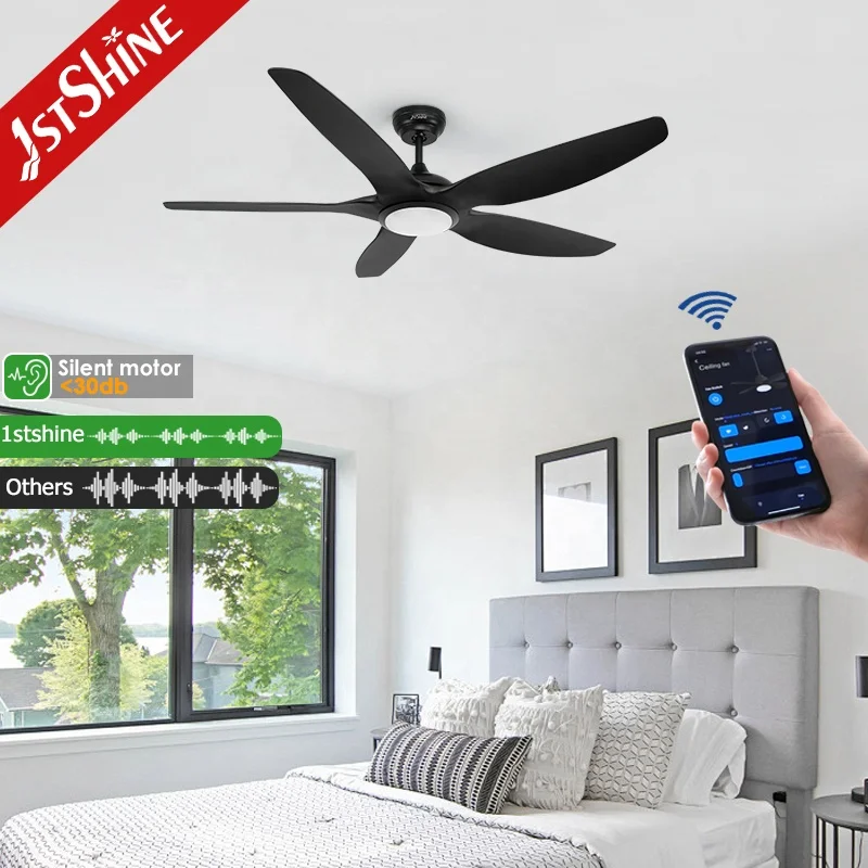 1stshine LED Ceiling Fan Hanging Black ABS Blades DC Motor Ceiling Fan with Light