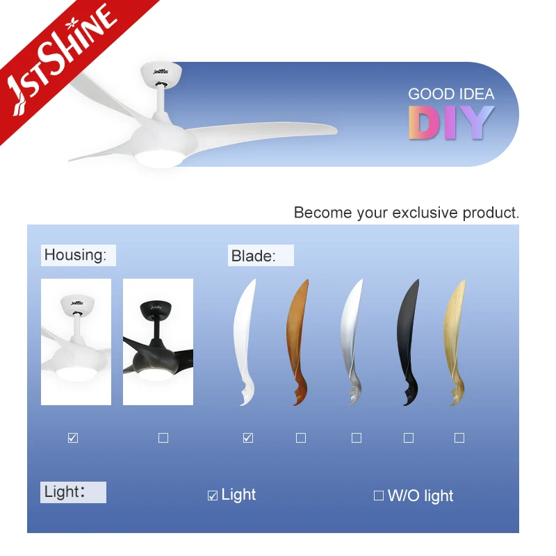 1stshine LED Ceiling Fan Factory Price Indoor OEM Color ABS Blades Remote Control Ceiling Fan with Light