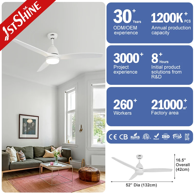 1stshine LED Ceiling Fan White Plastic Blades DC Copper Motor Remote Ceiling Fan With LED Light