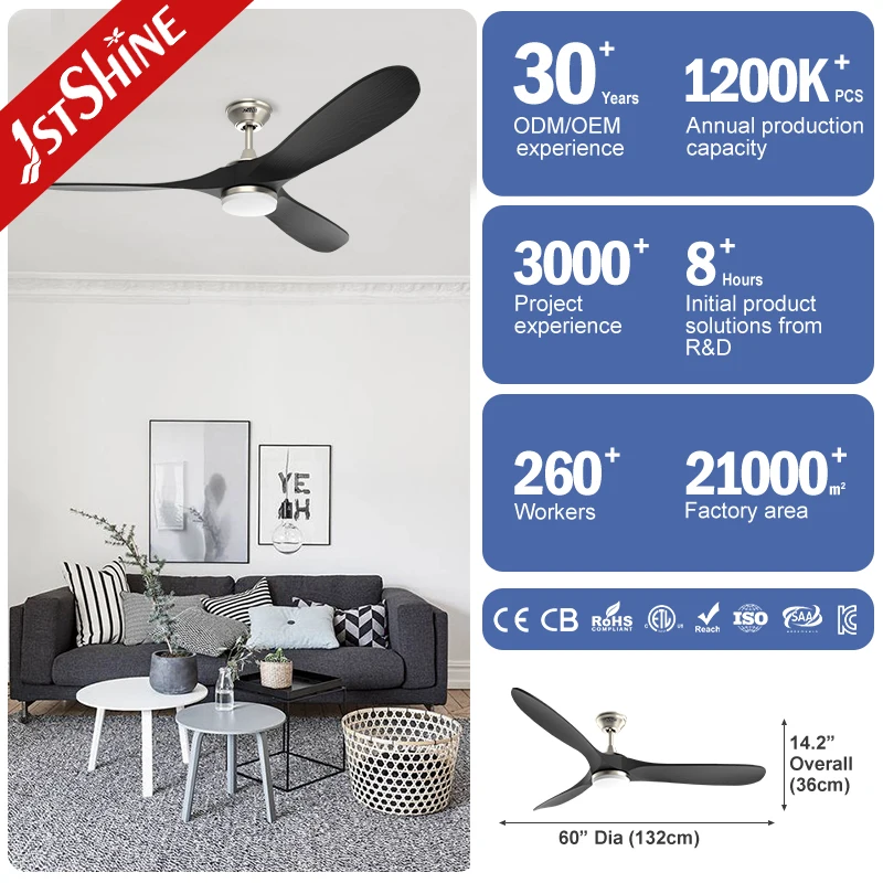 1stshine LED Ceiling Fan 60 Inches Adjustable Wind LED Lighting Wood Blades Ceiling Fan