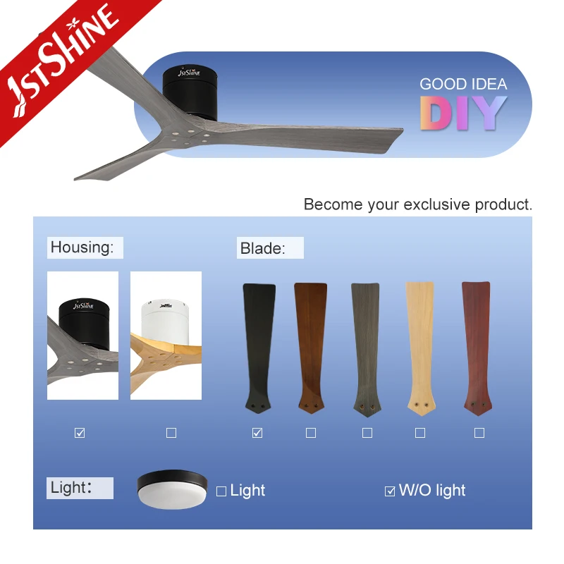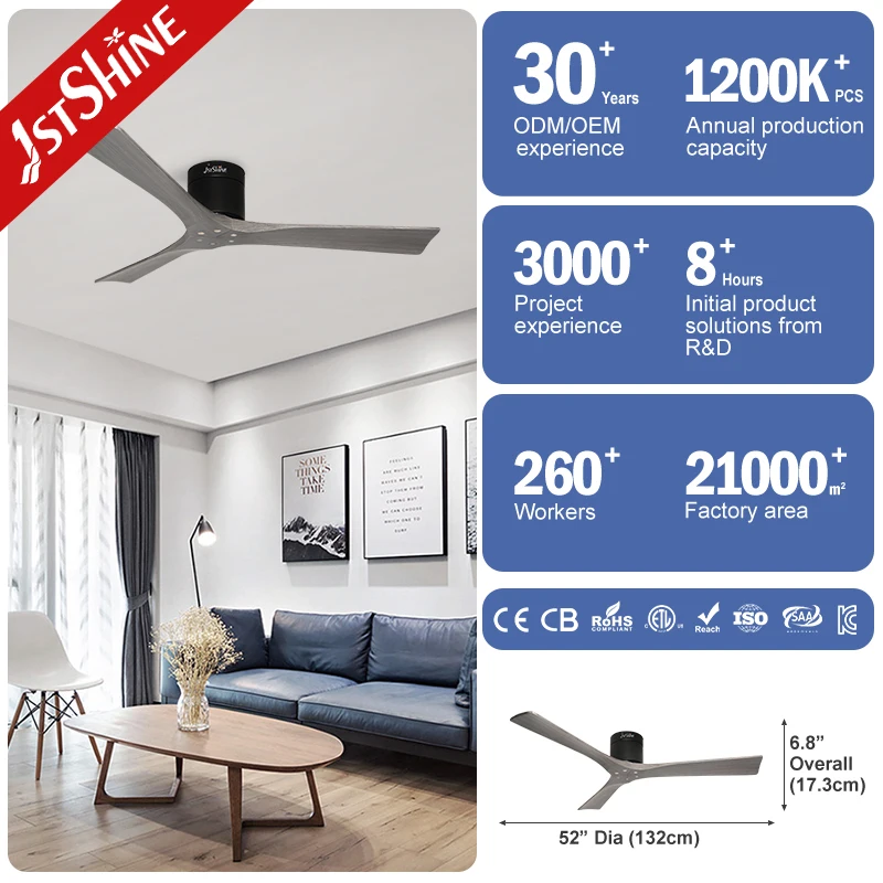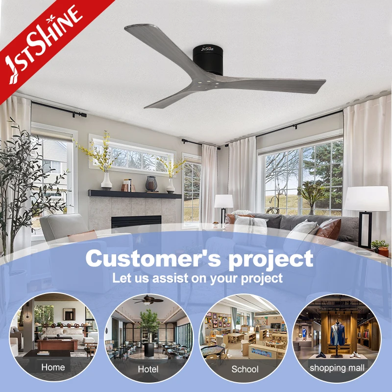 1stshine Ceiling Fan Smart Remote Grey Wood Blades High Quality Mounted Ceiling Fan