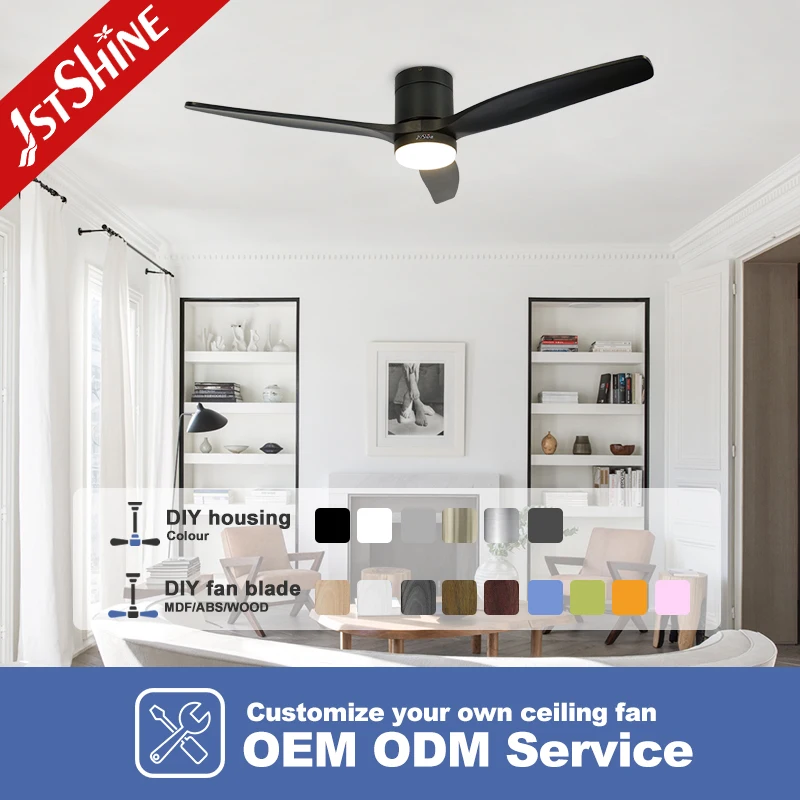 1stshine Ceiling Fan Black Flush Mount Smart Control Low Ceiling LED Ceiling Fan with Light