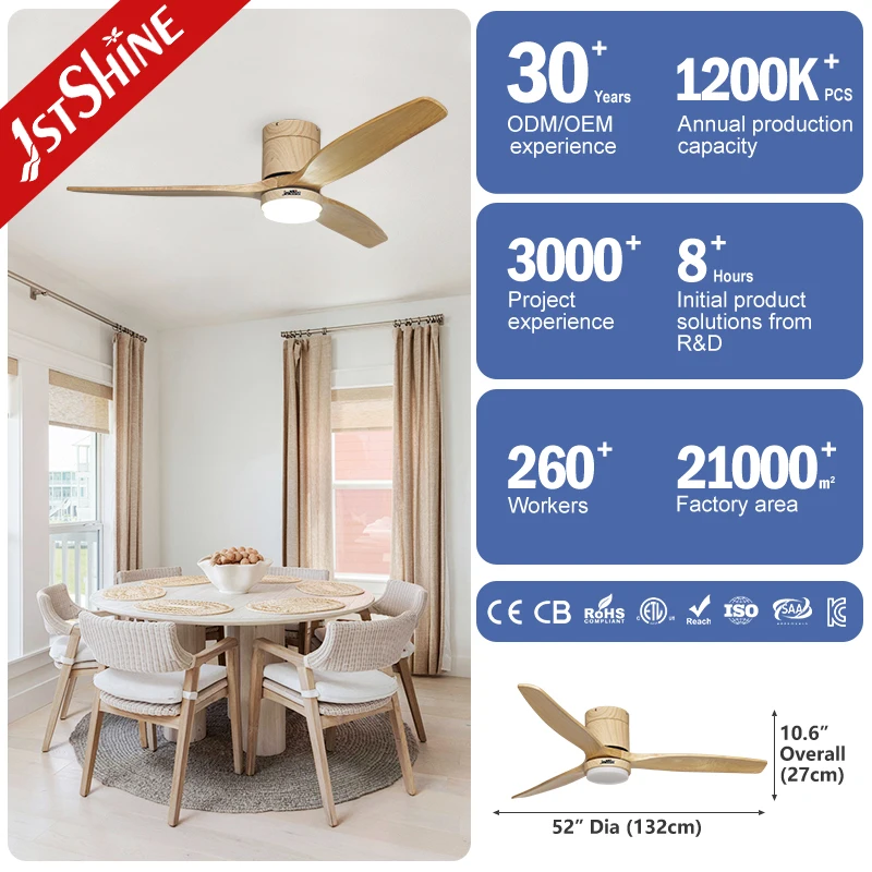 1stshine Ceiling Fan Hot Sale Wooden Flush Energy Saving LED Ceiling Fan with Remote