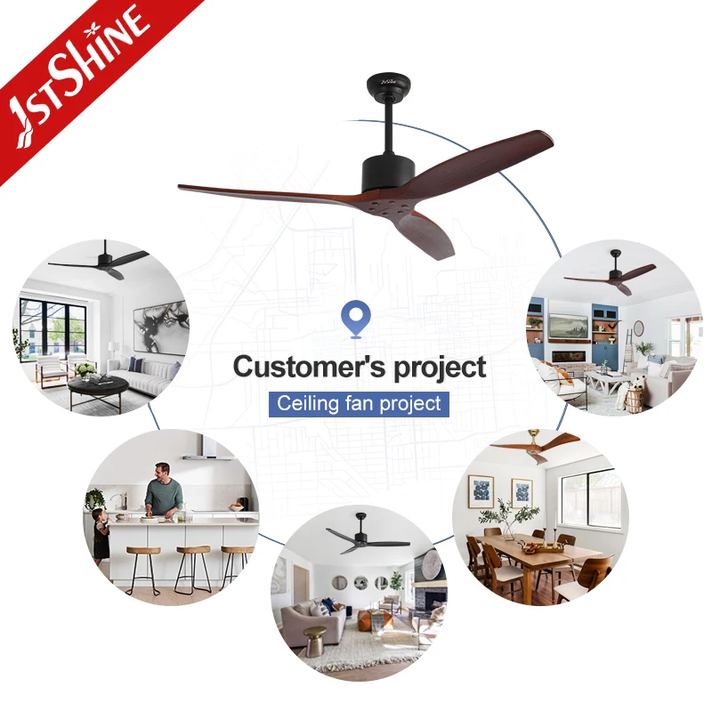 1stshine Ceiling Fan 3 Wooden Blades Copper DC Motor Black Smart APP Low Noise Ceiling Fan with Remote