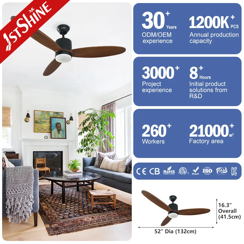 1stshine Ceiling Fan Modern Rustic Farmhouse Wooden Blades 52 Inches Ceiling Fan with Lights