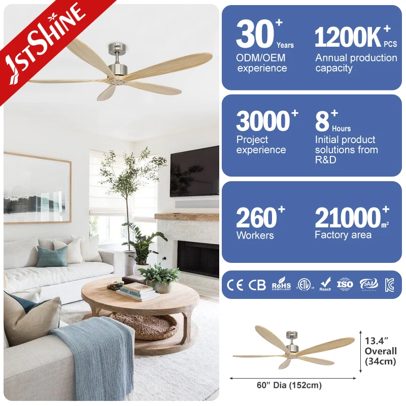1stshine Ceiling Fan Sleek Wooden Blades Manufacturer DC Motor 6 Speeds Indoor Wood Ceiling Fan With Remote