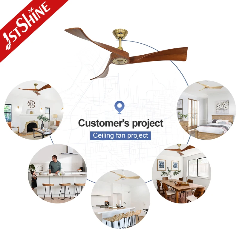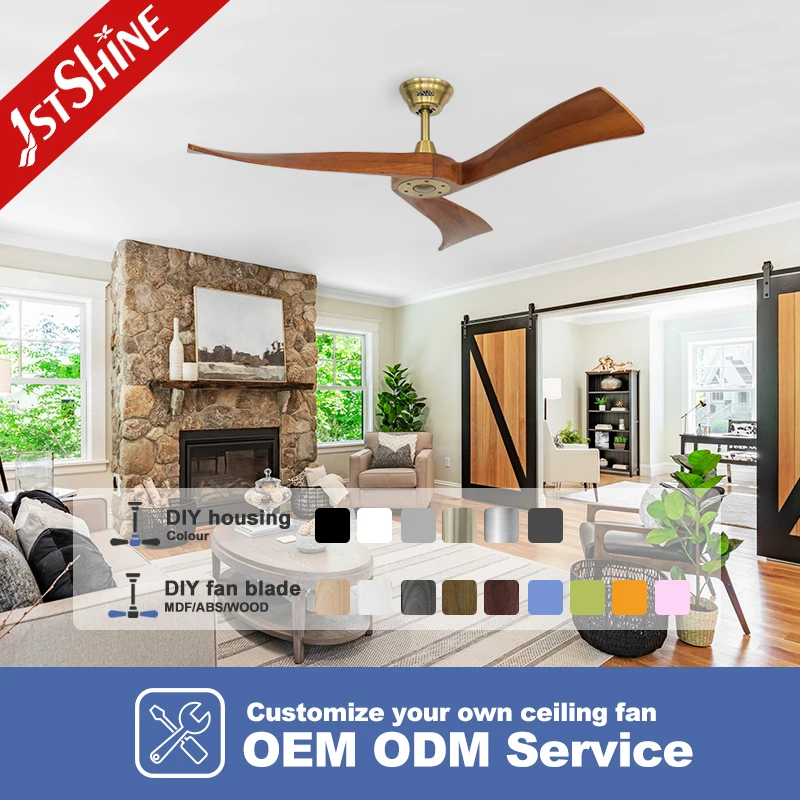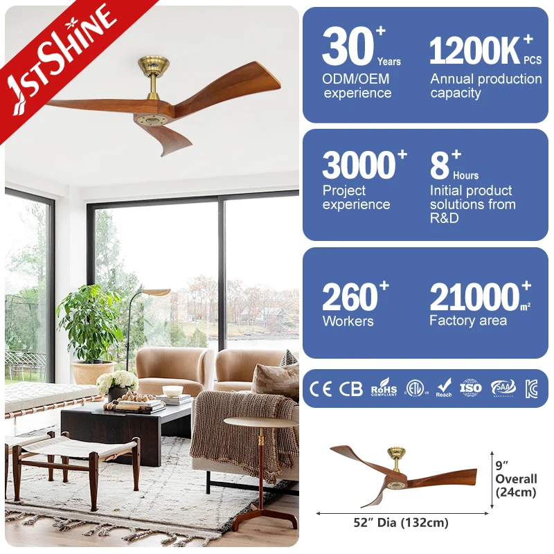 1stshine Ceiling Fan Indoor 3 Solid Wood Blades 52 Inches Low Noise DC Ceiling Fan with Remote