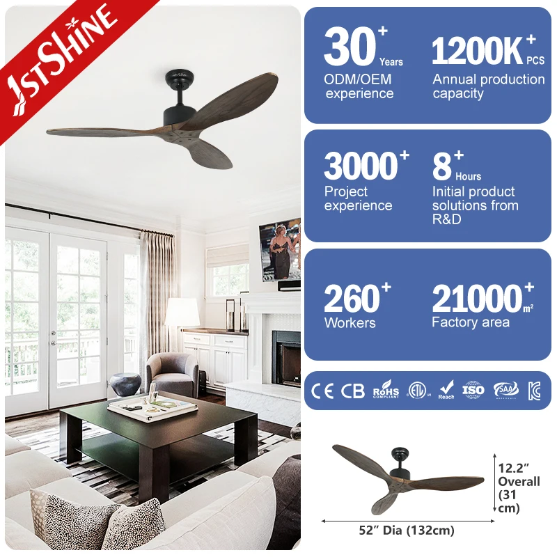 1stshine Ceiling Fan Natural Solid Wood 3 Blades Decorative DC Quiet Soft Wind Ceiling Fan for Bedroom