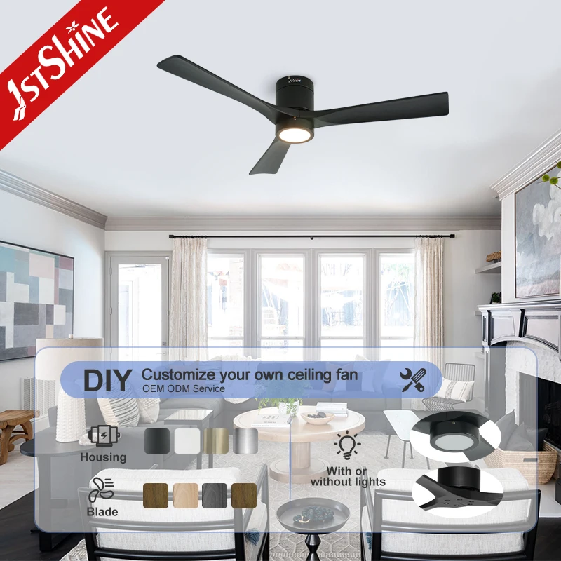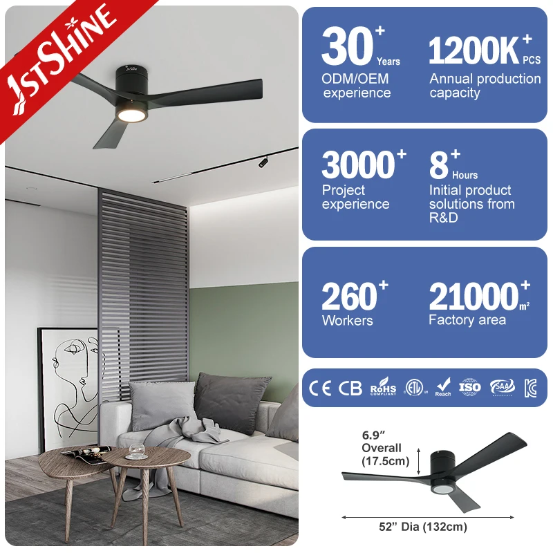 1stshine LED Ceiling Fan 3 Wooden Blades Dimmable LED Lighting Flush Mounted Ceiling Fan with Smart Remote