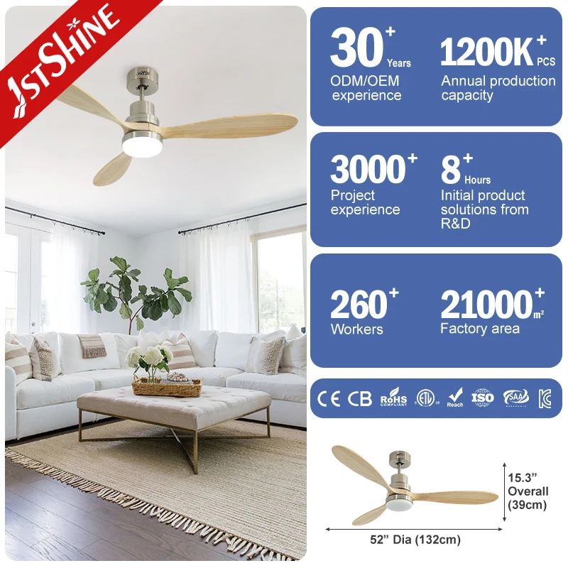 1stshine LED Ceiling Fan Household 3 Wooden Blades Remote Energy Saving Modern Led Ceiling Fan Light