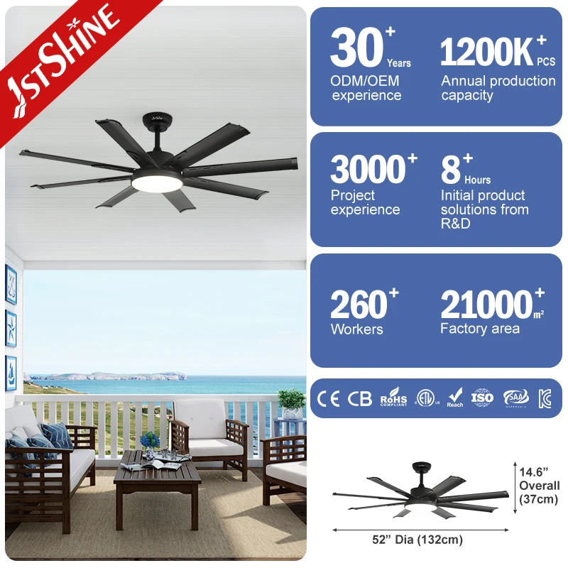 1stshine Ceiling Fan Large Airflow Metal Durable Aluminum Blades Big LED Ceiling Fan with Remote
