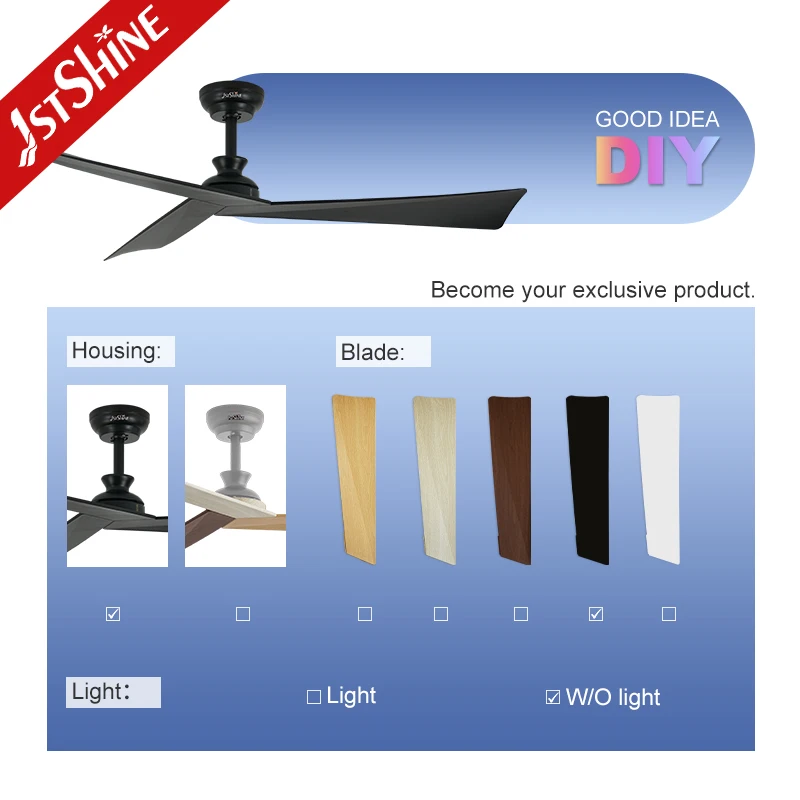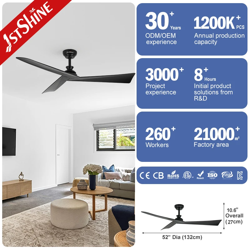 1stshine Ceiling Fan Indoor 220V DC Motor 6 Speeds Black Plastic Blades Smart Ceiling Fan Without Light