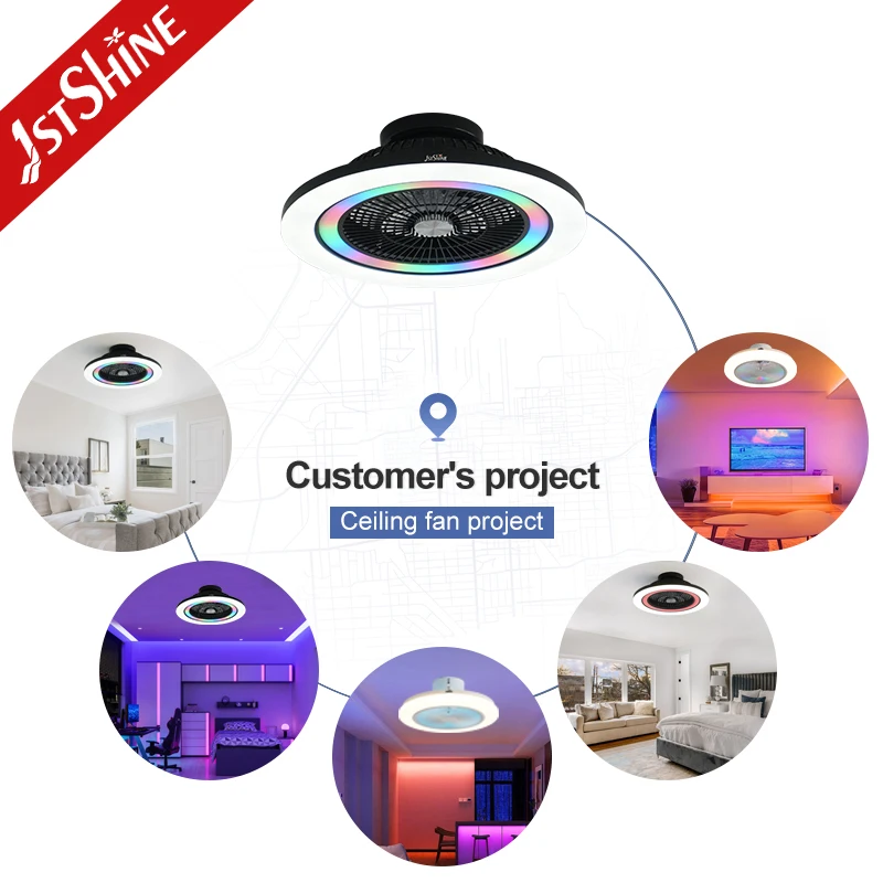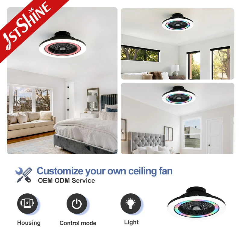 1stshine LED Ceiling Fan Fancy 23 Inches RGB Lighting Party Flush Mounted Ceiling Fan with LED Light