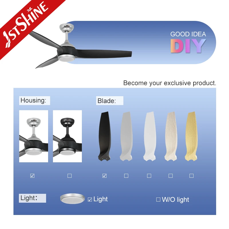 1stshine LED Ceiling Fan OEM Plastic Blades 3 Color LED Lighting Ceiling Fan Light with Remote