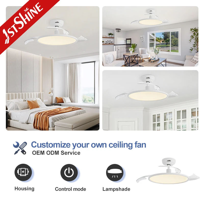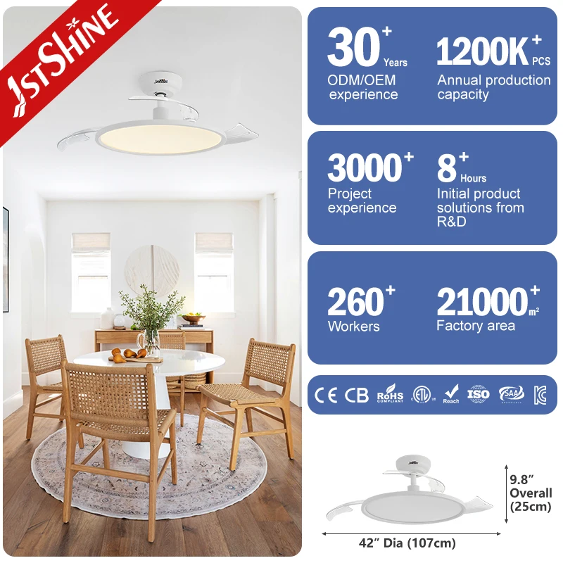 1stshine LED Ceiling Fan White Low Power 6 Speeds Eye Protect Led Ultra-thin Invisible Ceiling Fan Light