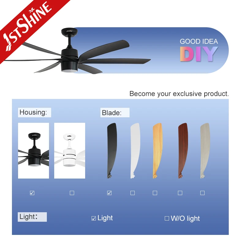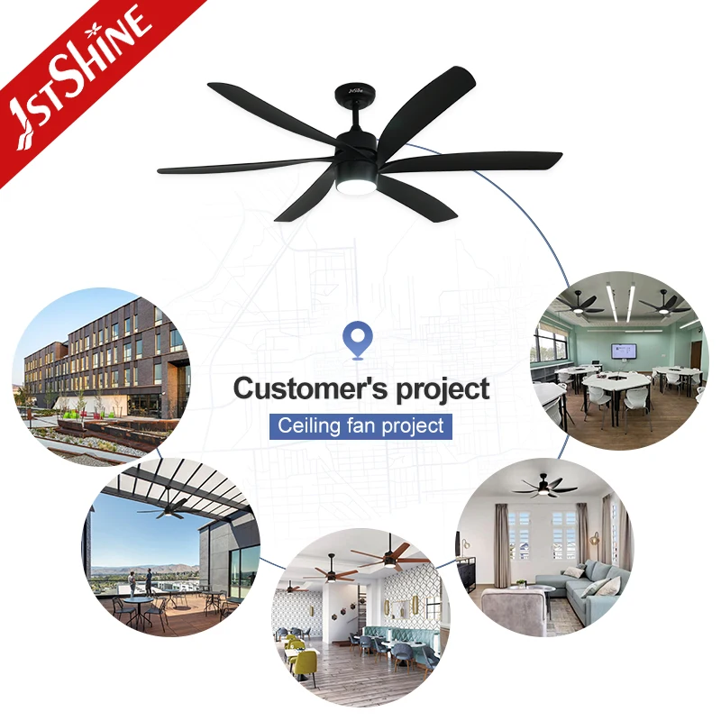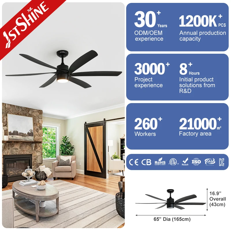 1stshine LED Ceiling Fan Large 65 Inches Big Space Use Plastic Blades High Airflow Black Ceiling Fan with Light